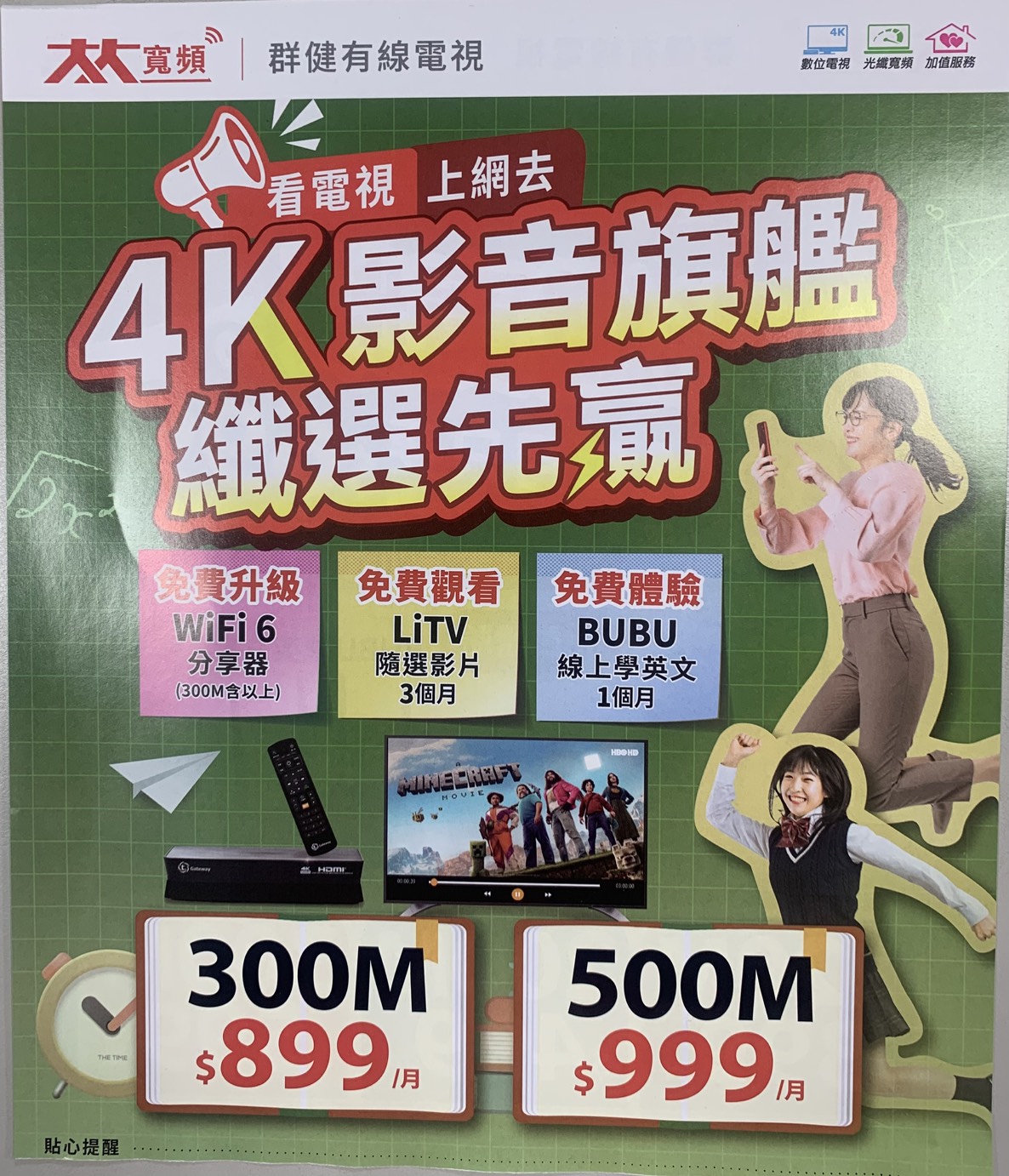 第四台+網路(特惠價)-群健|大大寬頻-線上申裝專區,台中有線電視,台中第四台,光纖網路,裝機熱線專人說明